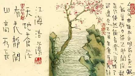 深山寂寂,一树春红。自开自落,散入风中。欲折归去,谁适为容?来似有意,去即成空。(《四季云水图卷》之一局部)