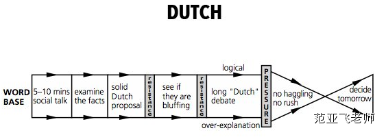 荷兰人的谈话过程中很注重列举事实和数据,“感情牌”对他们一般没有什么杀伤力。没有一个长篇大论的荷兰式经典辩论,荷兰人很难做出一个决策;有的时候,这会导致荷兰人陷入一个“过度分析”的怪圈。和荷兰人首次见面,气氛往往都很严肃;聊个三四次之后,他们才会渐渐学会和你放松。