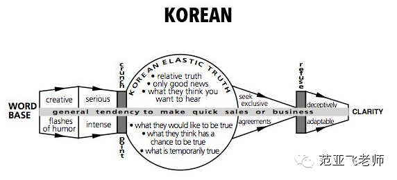 韩国人很热衷于和别人交谈,这个民族认为他们比亚洲的其他民族更擅长于和西方人打交道。他们总是寻求快捷的赚钱方式,好胜心很强,所以很难和他们达成一个长期的合作项目。在和韩国人打交道的时候,不要听他们吹的天花乱坠,把未来描绘的多次多彩;多去看看他们以往的承诺和事实是否相合,很多决定你自然就知道怎么做了。