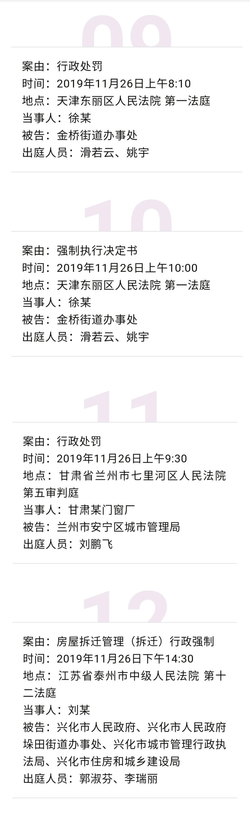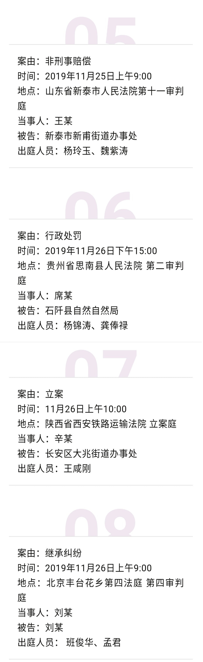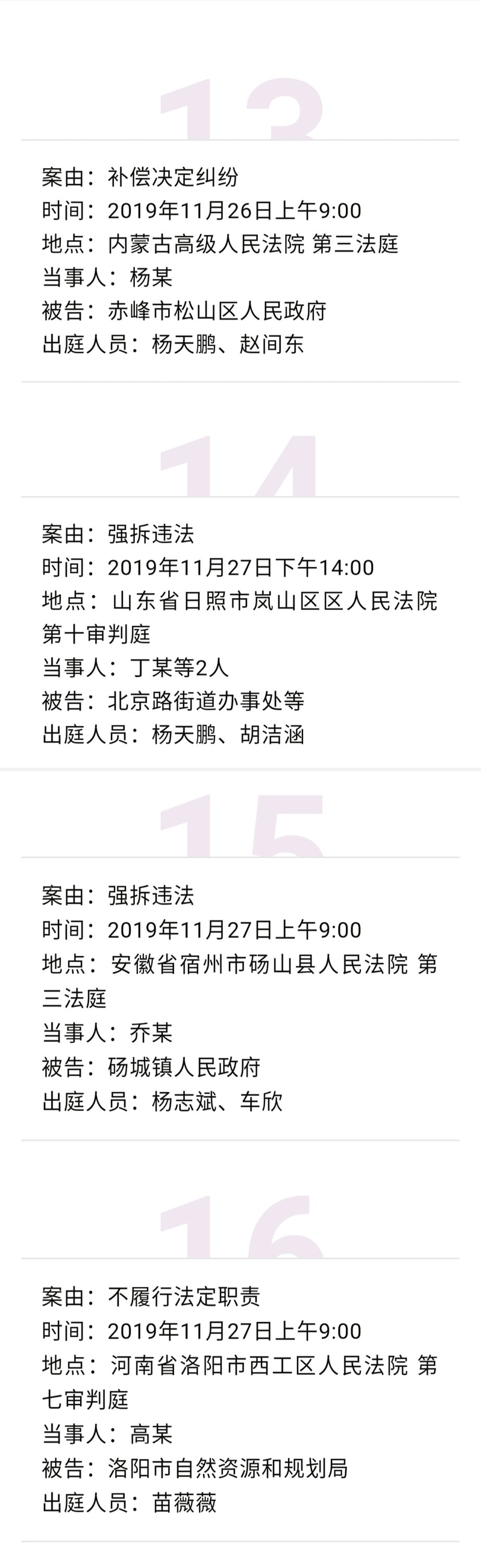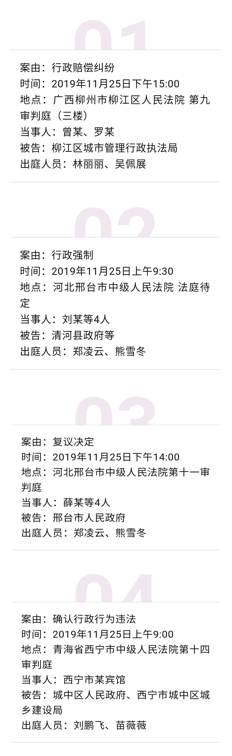 【开庭公告】冠领律师团队2019年11月25日-11月29日开庭时间表