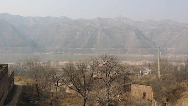 村子里,过去家家户户都是窑洞,依山而筑,从山脚一直修到山顶,近3000人。我家基本上位于中间,到山顶和山脚的距离差不多。下面这张照片就是从我家院子外拍到的,山脚就是中华民族的母亲河——黄河,对岸是陕西。