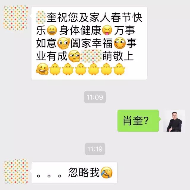 这么多微信里,有一条最让我感慨万千。和我将近1年没见面的“张美美”除夕那天给我发来了拜年微信,让我很激动,可是看到微信的最后,我的心就凉了半截。“张美美”给我发来的拜年微信,结尾署名却是“李丽丽”。