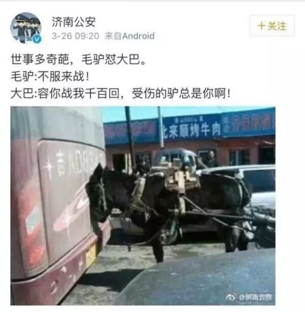 这张毛驴撞大巴的图片,以及微博里的文字,疑似暗讽网友是驴。于是被网友戏称为:“毛驴怼大巴”。