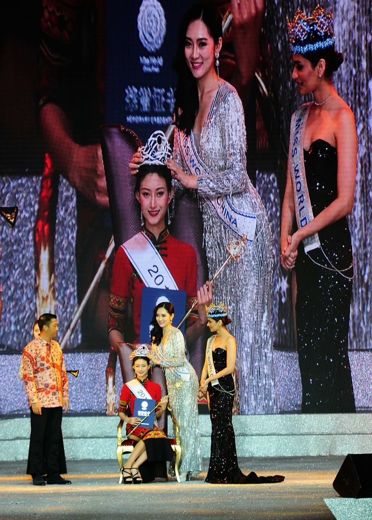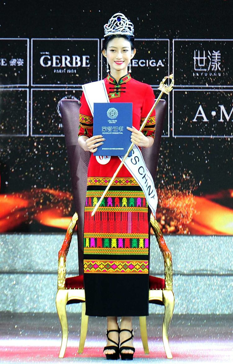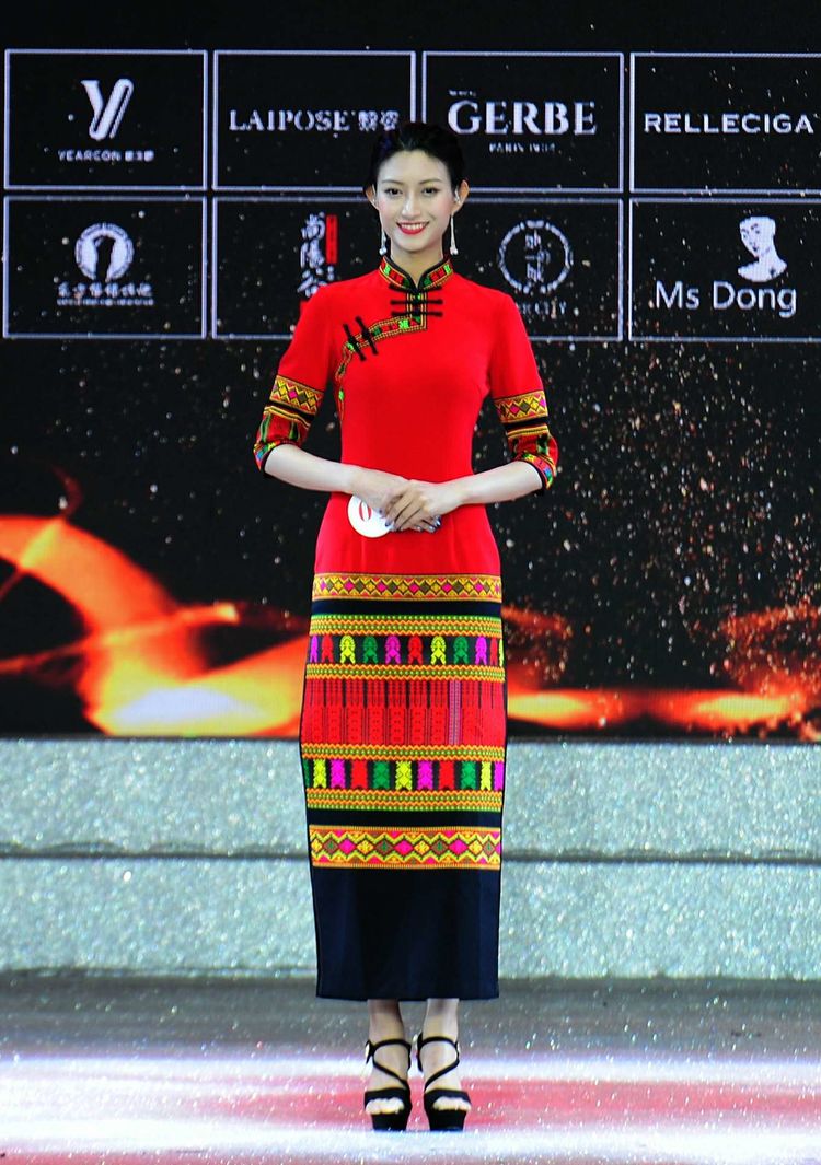 新晋中国小姐毛培蕊是身着海南黎锦旗袍夺冠的。