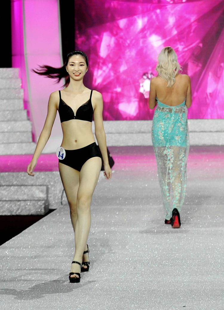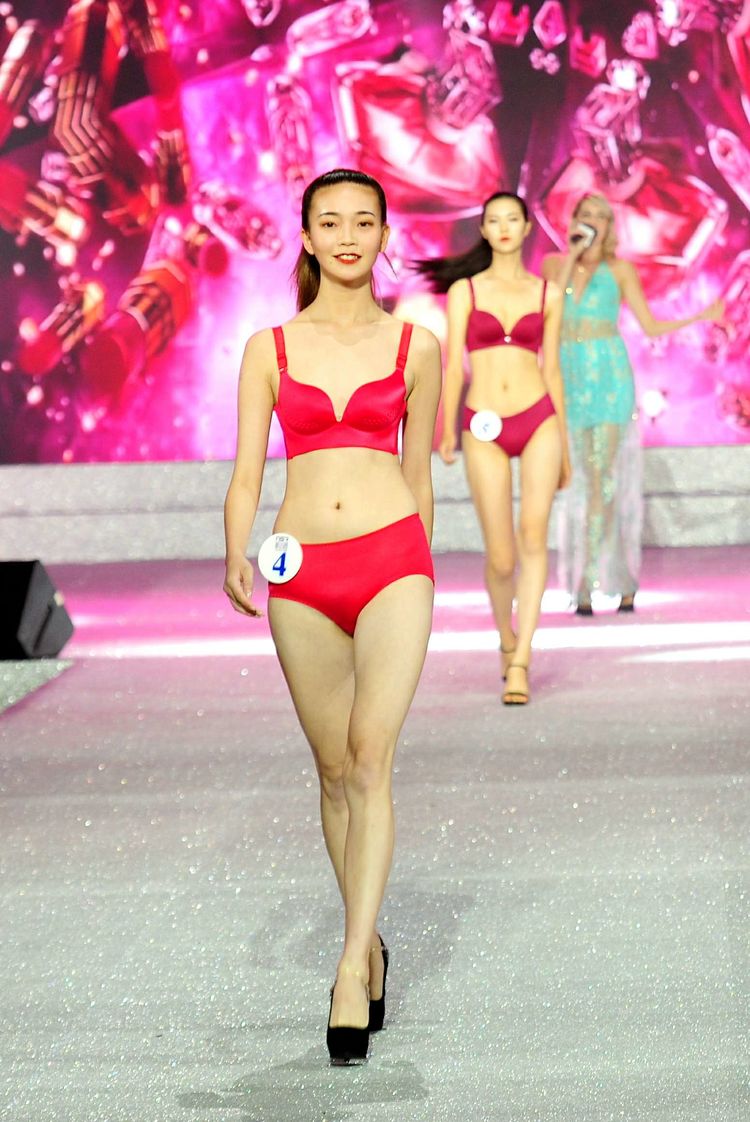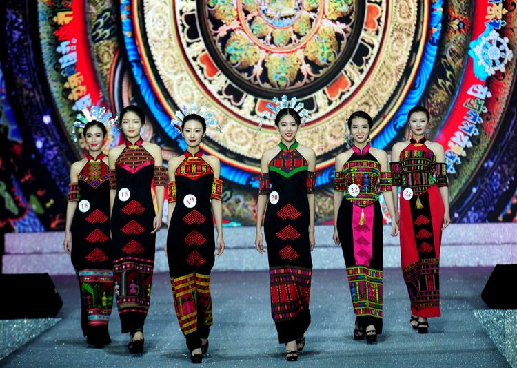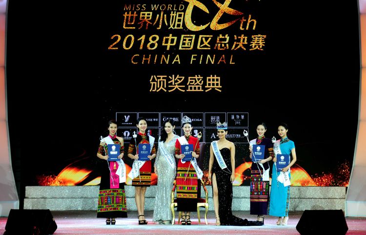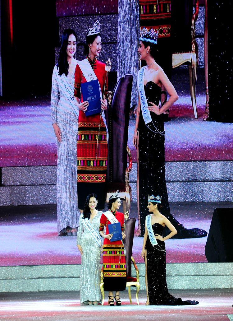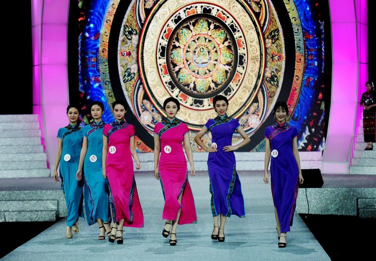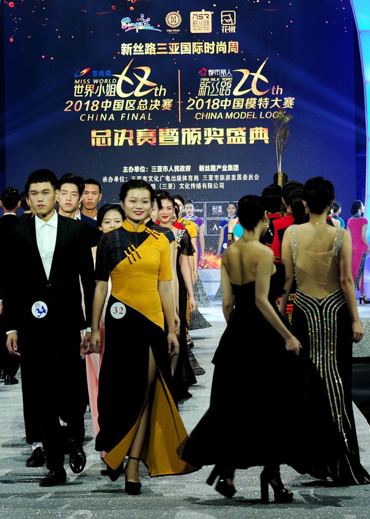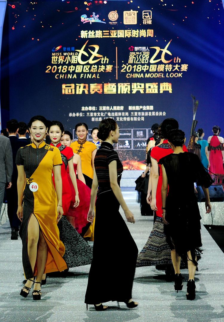 参加世界小姐中国区决赛的53名佳丽,在晚装环节身着各式黎锦旗袍,演绎了一场高水平的模特秀。