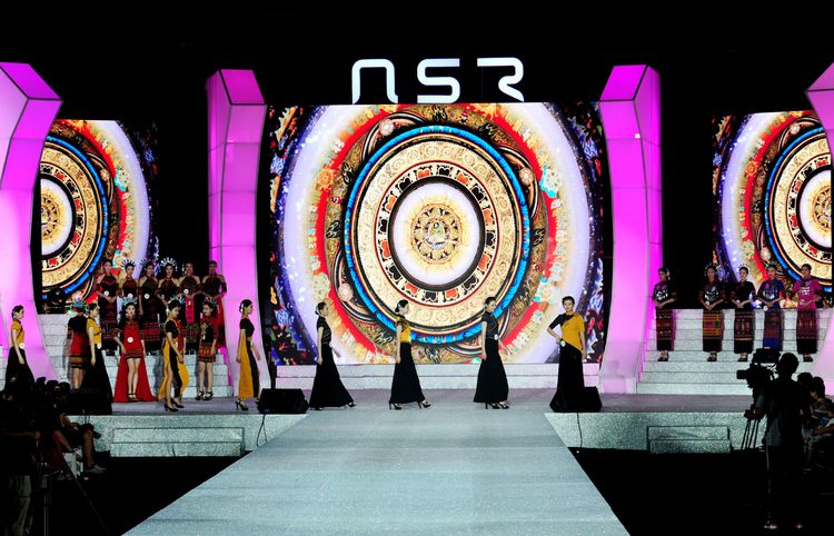 黎锦旗袍在晚礼服走秀中与其它礼服的对比。
