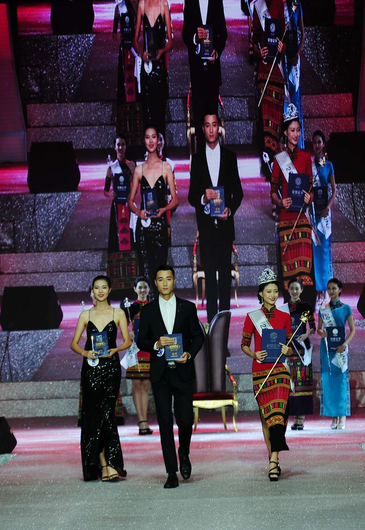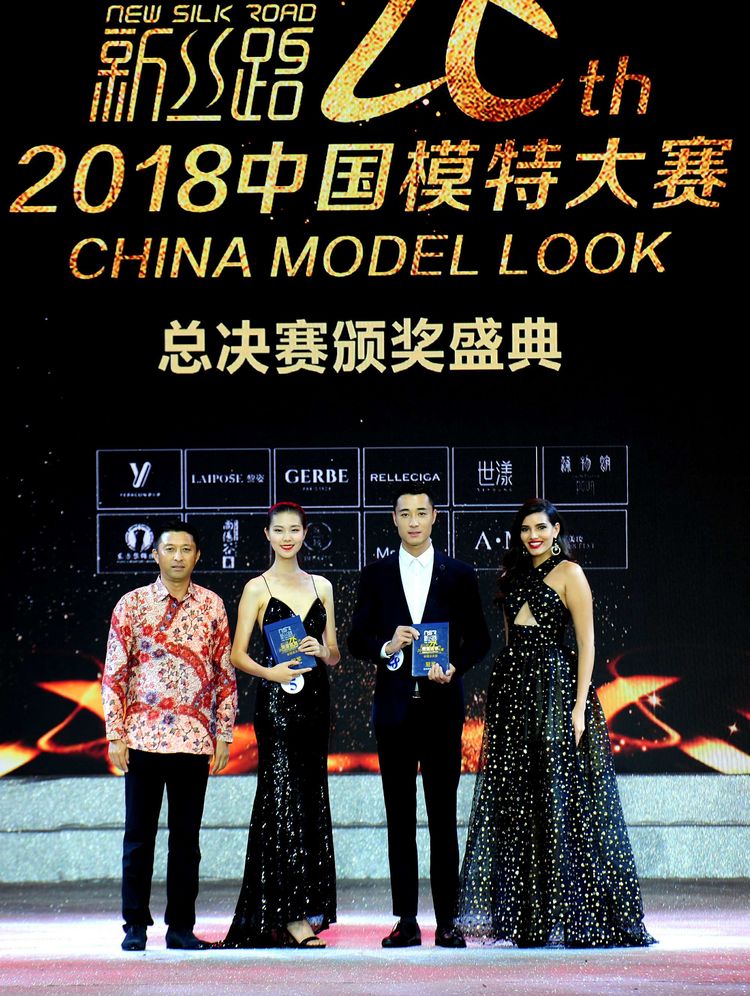 先颁发26届新丝路模特大赛的各奖项,王罡夺得男冠,周新怡夺得女冠。