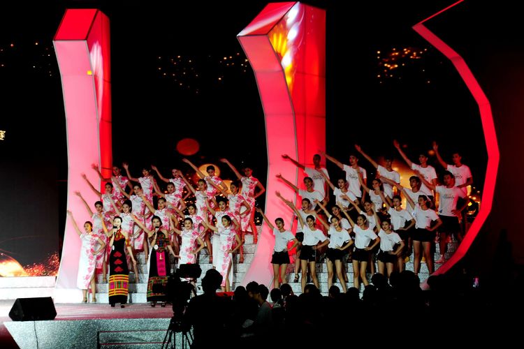 两名主持人也身着黎锦旗袍,格外亮眼。