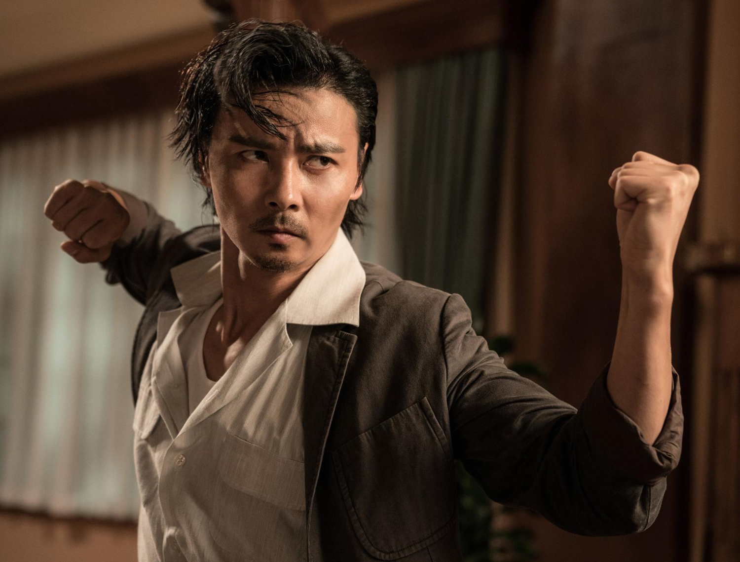 就这样,在《叶问3》中敢于挑战叶问的落魄武师、咏春别派人物张天志粉墨登场了。一直看上去一脸愁苦的张天志是不能这么落魄下去的,接承《叶问3》,《叶问外传:张天志》堂而皇之上了银幕。张天志是否确有其人暂且不表,只要拿捏得当