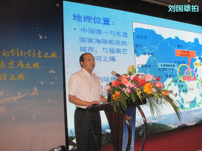国家住房和城乡建设部政策研究中心常务副主任、研究员,中国人民大学、中国社会科学院研究生院教授王珏林在会上做了精彩的专题演讲,他深入浅出地解读了我国房地产宏观走势与调控, 就新政下的海湾地产发展特点及趋势、海湾地产在中国房地产的地位,剖析了防城港市作为北部湾经济区域海湾城市的房地产发展潜力,也为防城港城市规划建设提供了许多保贵的意见和建议。防城港市是一个全海景的生态滨海城市,属南亚热带季风性气候地区,阳光明媚,雨量充沛,气候宜人,年平均气温22℃,四季如春;海岸线580多公里,阳光、沙滩美景如画。防城港市地处广西北部湾经济区的核心区域,已经纳入国家发展战略,在中国-东盟自由贸易区和泛北部湾区域合作中具有得天独厚的比较优势。特别是国家明确设立东兴作为重点开发开放示范区,以及随着总投资686亿元的钢铁基地、总投资约690亿元的核电、总投资约300亿元的金川铜镍等三大项目建成投产,沿海高铁的建成,使我市位于大南宁未来高铁40分钟生活圈内,南北钦防的同城化,这些都为防城港迎来了发展的大好机遇。