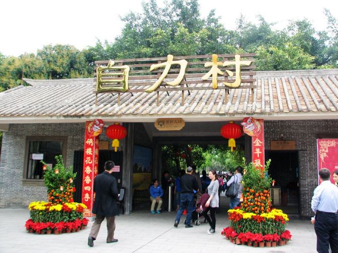自力村的主要景点,从左到右分别是叶生居庐--铭石楼