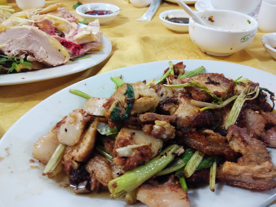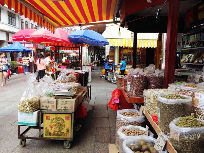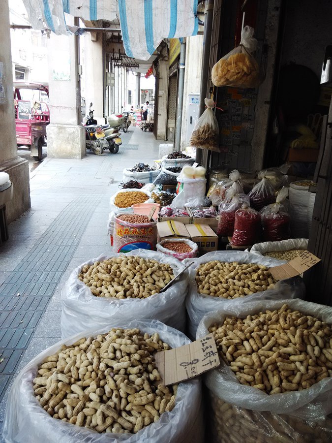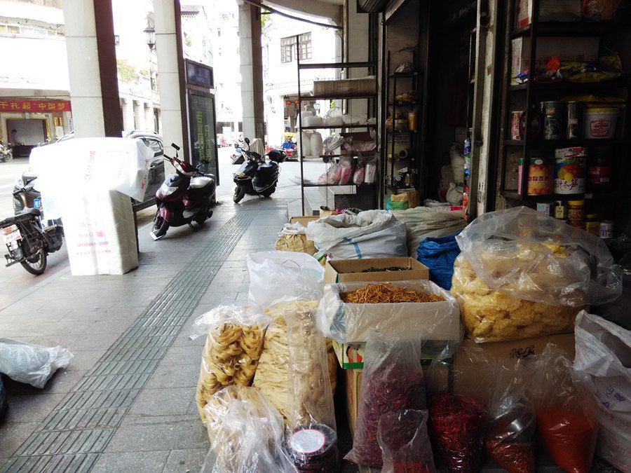 到梧州,肠粉也是肯定要吃的,第二天的早餐家人带去吃中山菜市的肠粉,不过不是梧州的老店,而是平南仔肠粉,用铁托盘做的,嫩滑嫩滑的。中午去钱鉴的一家大排档吃饭,人很多,焖田鸡很好吃。梧州骑楼城的沙街是传统的卖杂货的街道,批发糖果,粉面,坚果,菜干这类的东西为主。很值得逛一下,我在这里买了菜干,8元一斤,前几天拿来煲汤,很软的哦,也清甜。