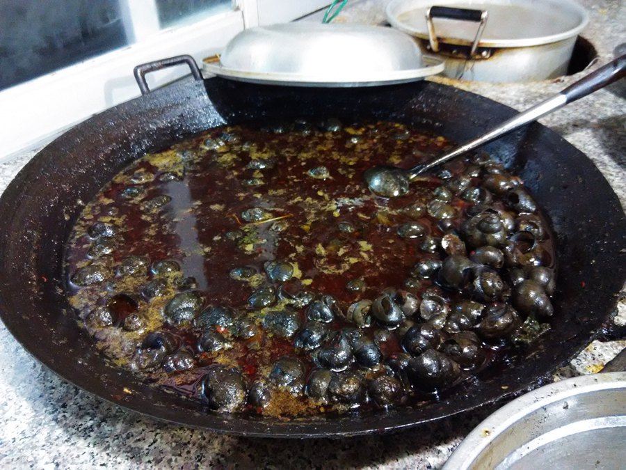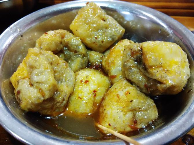 晚上夜宵,去马皇街吃卿记烧烤,那里的烧烤我第一次吃,烤鸡翅、鸡屁股、鱼泡,还不错。然后去大中路的醒醒田螺,田螺,豆腐卜,猪血,酸笋,这都是回来梧州必要吃的,难忘的美食。之后继续跟朋友去四方井的南华利吃粉,南华利原本在九方路那边,后来搬到这里的,这里的粉汤清淡但味道好。主要是这里有炸云吞、白云猪手,都是很久没吃的美食,点上一碟配着素粉一起吃,很不错。