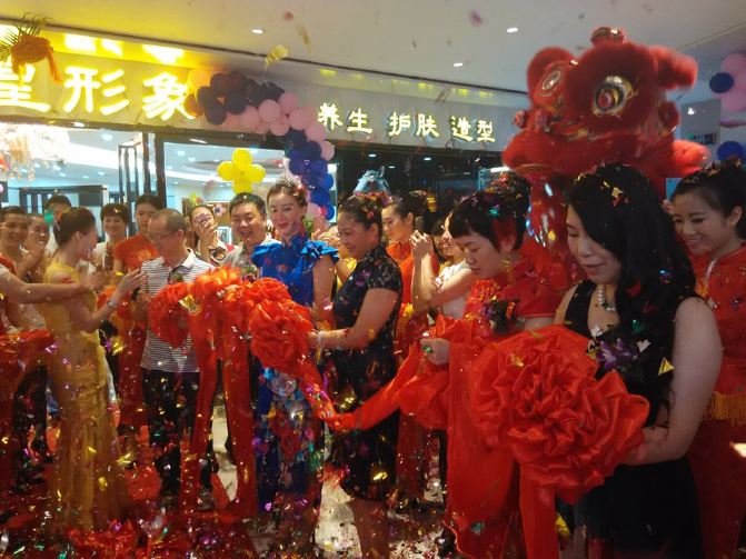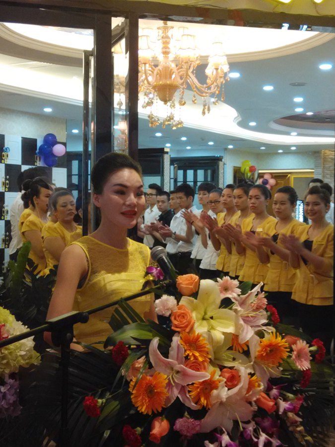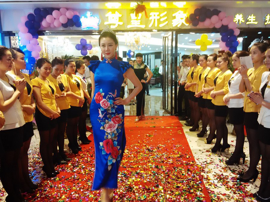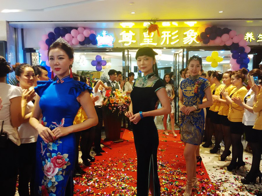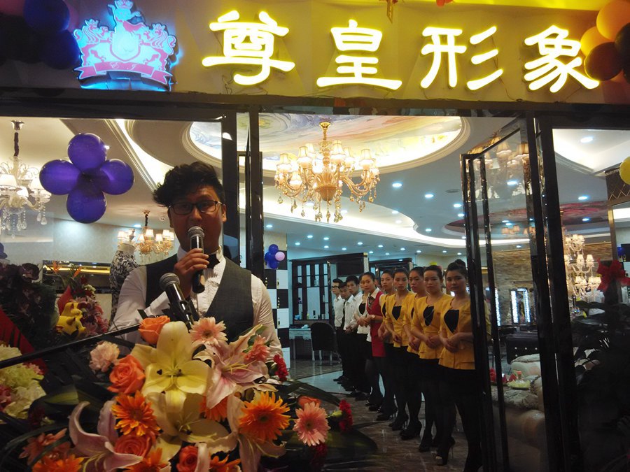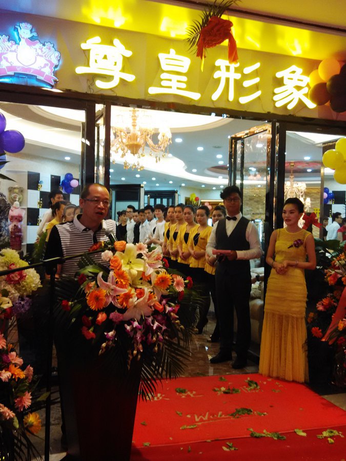 当天的开业仪式,众多嘉宾致辞后,老总为醒狮点睛,然后是醒狮采青,剪彩仪式,旗袍会的走秀表演。会所负责人韦总说,品位、真诚、质量是尊皇的生命。她将努力带领会所全体同仁以真诚情的态度,专业精湛的服务,全心全意为顾客塑造美丽,让大家都有一个健康的身体投入学习和工作,并通过技术改革和服务创新努力把尊皇形象打造成广西美容美发行业连锁第一品牌,并致力打造成为带动中国美业的核心。