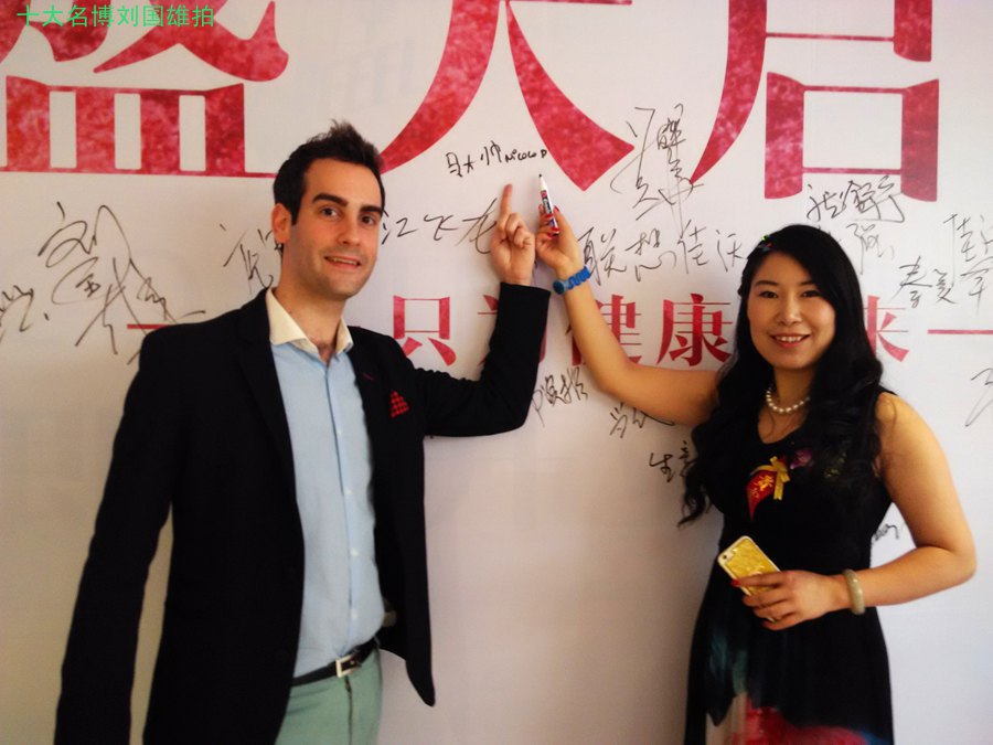 在现场,我碰到了欧菲利国际酒庄的许总,她带来了参演《小时代3》里面一个服务员角色的法国帅哥马大帅,师哥读过上海戏剧学院的,普通话不错,很开朗,大家纷纷和他合影留念呢。