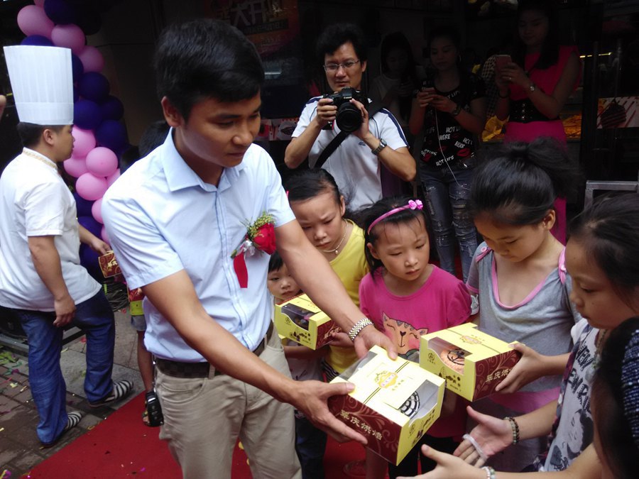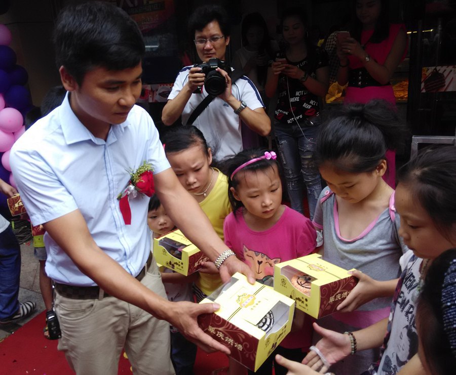 六一过生日,合浦"黄记"送蛋糕月饼 图文:刘国雄