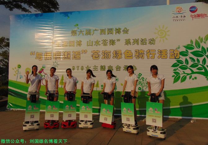 时尚平衡车是970女主播电台带到园博会的新玩意,美女没开着它们在园区里游走,引发围观。