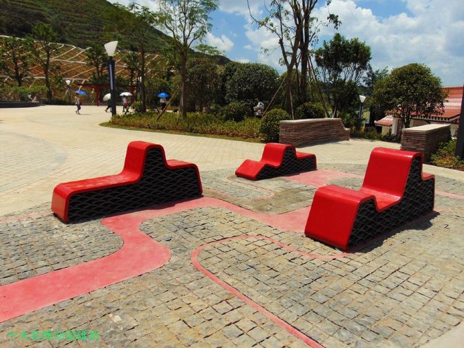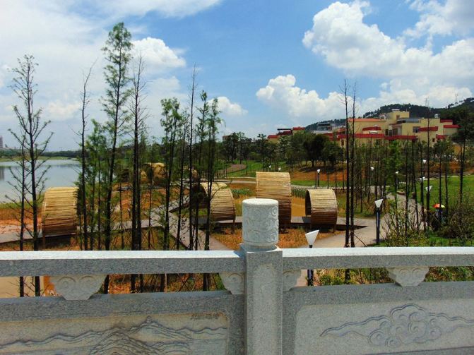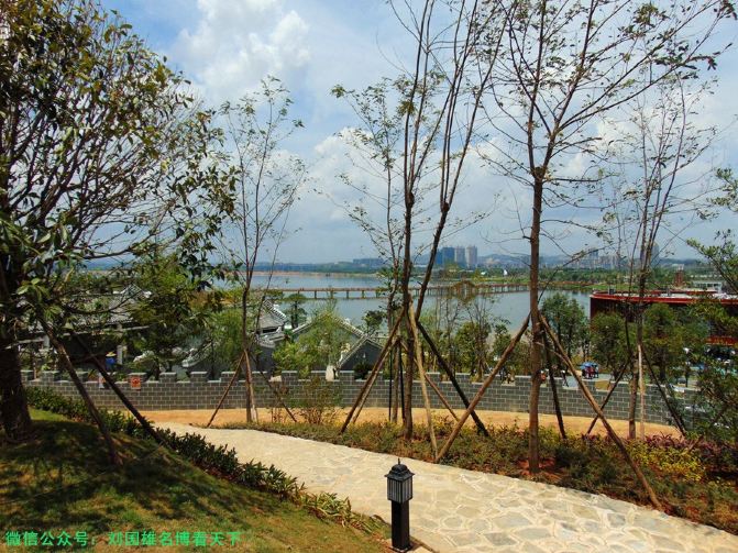 梧州园面积最大,将城市三江汇流独特的地理环境进行抽象概括,将城市文化置入场地空间。