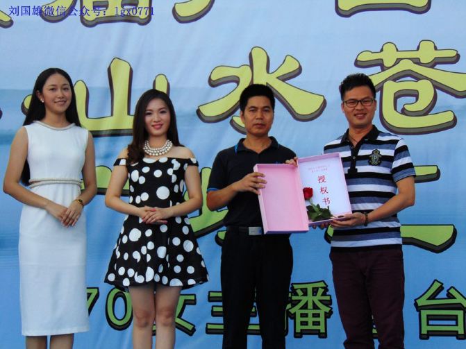 广西970女主播电台雪梨女主播文杰、椰子女主播清元主持了当天的汇演,深受广西听众喜欢的、清新靓丽的女主播从幕后来到台前,让人眼前一亮。梧州市苍海建设投资有限公司常务副总刘伟致辞时说,970女主播的清晰温暖的气质和绿色生态的苍海很相配,希望大家象爱970女主播一样爱苍海。970女主播电台副总监宋扬表示,苍海不仅是梧州的苍海,更是中国的苍海,世界的苍海,970女主播电台将多渠道宣传苍海项目。随后,现场举行了970女主播倾情代言山水·苍海项目授权仪式,这预示着,靓丽的女主播们将以代言人的身份为苍海新区的打造发力,这也开创了广西城市新区宣传新模式。