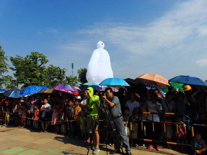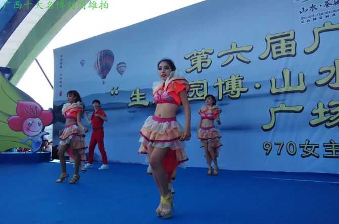 当天上午8点40,我们来到梧州市园博园的时候,发现这里已经有很游客前来游玩了,苍海新区苍海展示中心广场上一个有15米、5层楼那么高的大白特别醒目,让众多游客忍不住驻足合影。在这里举办的苍海山水节广场汇演更是吸引了游客们的目光,由970女主播电台策划、承办的系列活动又名“苍海山水节”,广场汇演的演出既有律动感十足的街舞、独具特色的民族舞蹈,也有模特秀、魔术以及诙谐滑稽的小丑表演等,精彩的演出博得了市民的阵阵喝彩和掌声。即便是炎热是天气下,他们也看得津津有味。