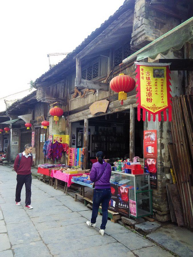 这粉店就在古镇老街入口,左边拐进去就是了。