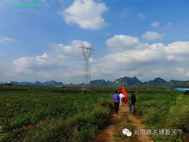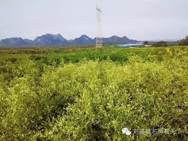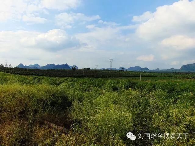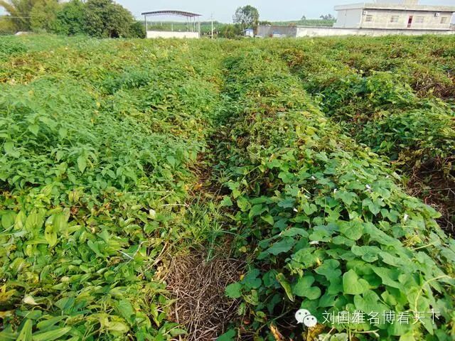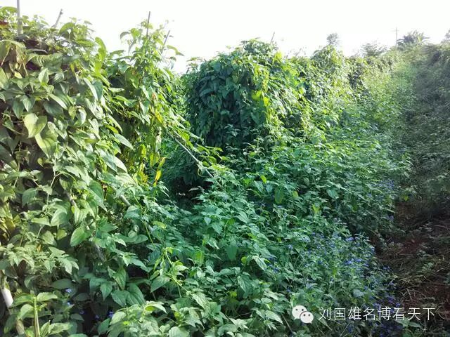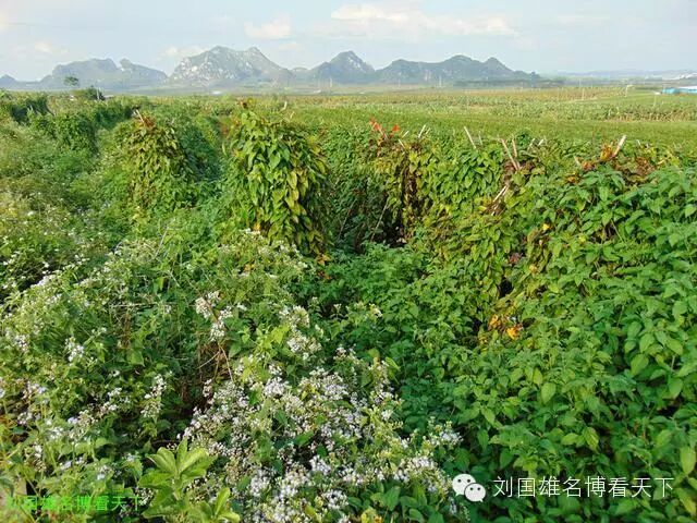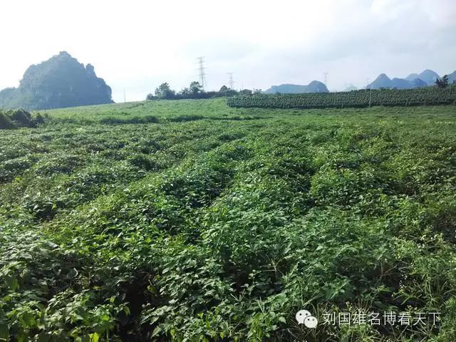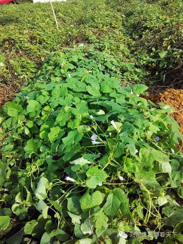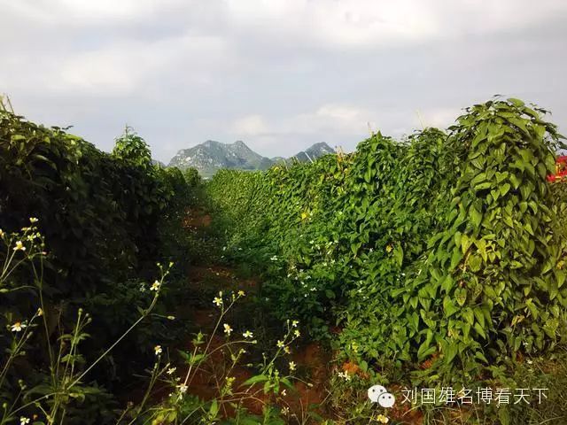 吃完饭,下午去武鸣里建的凰珍紫玉淮山基地实地考察,从里建到基地一直在穿越一大片芭蕉林,然后才来到一个山头,哇,好一个有机紫玉淮山种植基地。首先看到的是满眼的白花菜、满天星、牵牛花,然后是绿油油的紫玉淮山甜,配上远处的喀斯特地貌的群山,风景很美呢。野花野草那么多,看来是不用除草剂、不打农药、不放化肥的田。
