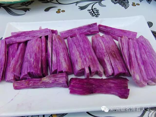 《本草纲目》记载,“紫山药为地中之宝”,指的便是这种紫玉淮山。在营养专家眼里,紫色正是我们中国人餐桌上最缺的一道色彩——这类食物往往含有超强的抗衰老成分。紫玉淮山富含的花青素,属于类黄酮物质,其抗氧化能力堪比维生素C和E,能有效清除体内有害物质自由基,帮助人体抗氧化,延缓衰老。它还富含人体必需的微量元素硒,能有效提高人体的免疫力,有益于脾、肺、肾等功能,有美肤纤体,滋阴补肾,改善视力等功效,可谓老少皆宜。