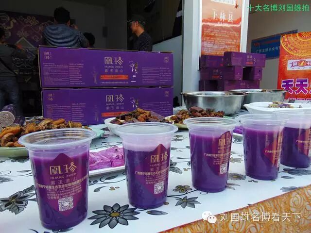 这里因为是新开的,所以各县的展厅轮流做活动,中午结合自己的产品做菜请大家吃饭。当天是上林厅搞轮值,瑶康公司董事长黄香骊特意从武鸣基地挖来的凰珍有机紫玉淮山,用来做紫玉淮山汁和各种菜。