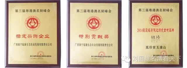 在2014年的《粤港澳名厨邀请赛》上,凰珍有机紫玉淮山获奖。