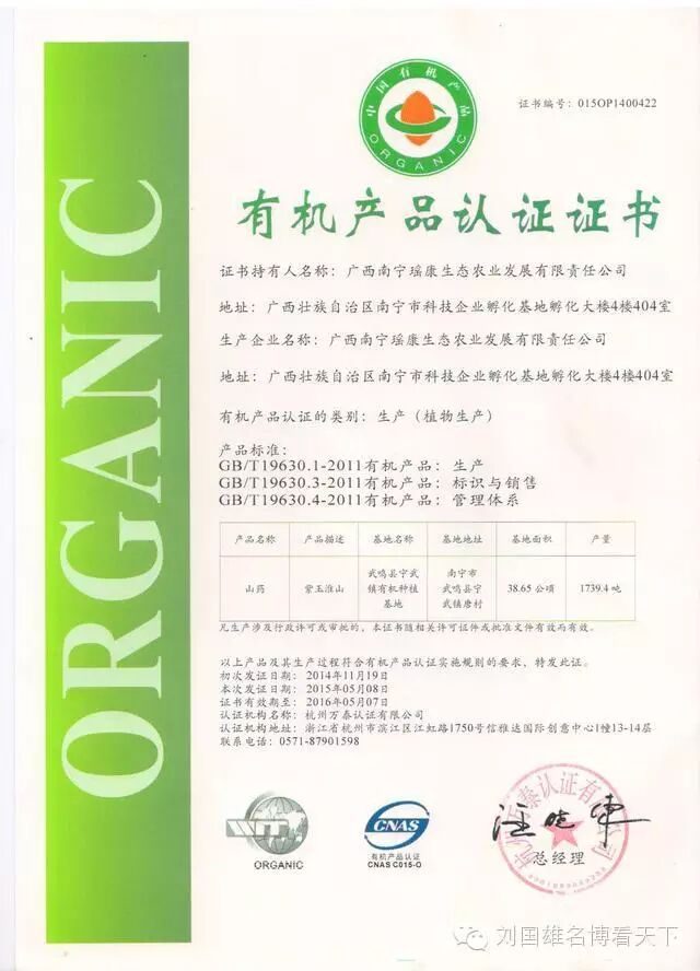 淡村(国际)食材采购中心负责人黄思颖也在现场,他说:我们采购中心就是看到他们是原生态环境种植,严格按照有机农产品种植标准进行操作,杜绝使用剧毒农药、膨大素等有害药品,才代理专营凰珍有机紫玉淮山的。