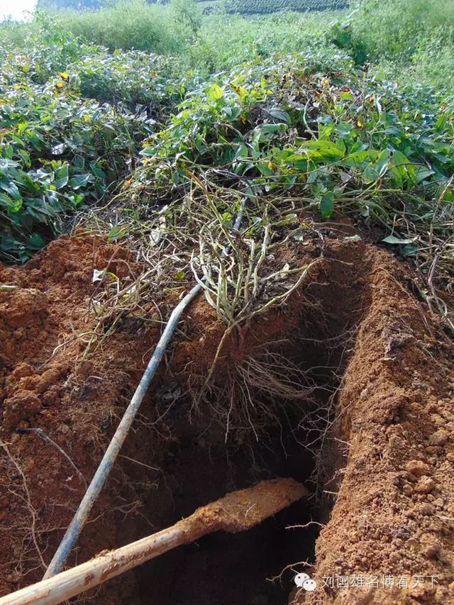 紫玉淮山有两种种植方法,第一种是深耕种植,也就是垂直栽种,叶子是贴在地上的,淮山可以深入地里,得到最大的养分,长得更好,只是挖出来很累啊。