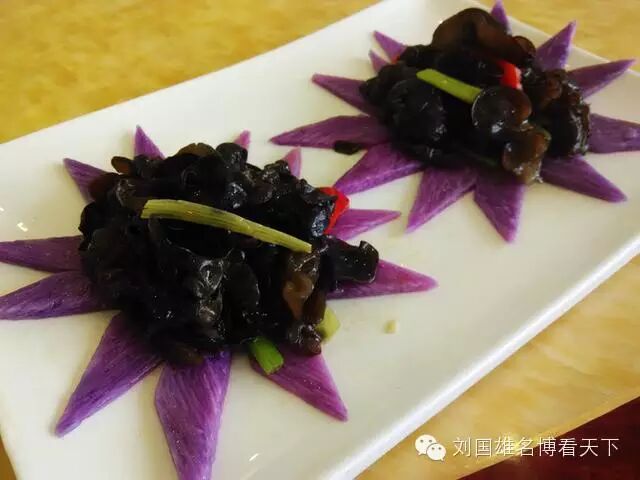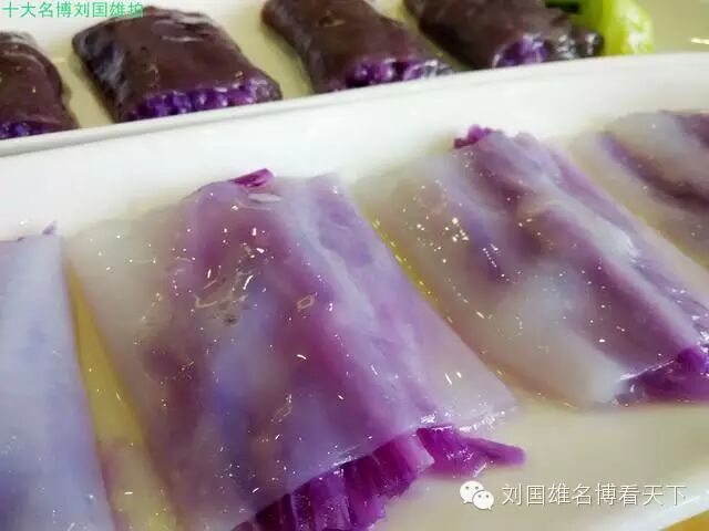 前阵子,我有幸在南宁金龙湾酒楼吃了一个紫玉淮山宴,大部分的菜是用凰珍有机紫玉淮山做的,像紫玉淮山汁、紫玉淮山烙饼、凉菜、炒牛肉、饺子、瘦肉粥,都非常美味。最特别的是肠粉,肠粉分两种,一种是紫玉淮山做馅的,粉还是平常的一样,另一种的粉皮加入紫玉淮山粉做的,皮呈深红色,薄薄的皮加上切丝的淮山做馅,这口感真是嫩爽啊。这些菜都是色彩丰富,紫色的食材看起来色泽靓丽、高端大气,好看又好吃,还很有营养,因为紫玉淮山的花青素是一般淮山的60倍。而我喜欢坐在落地窗前、吃着生的凰珍有机紫玉淮山,看风光旖旎的邕江风景。