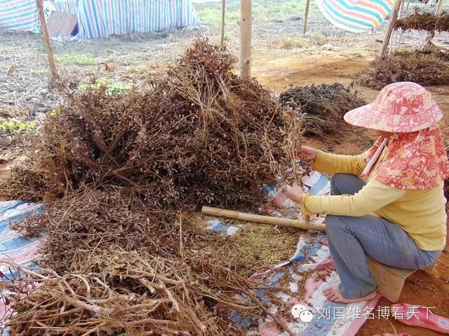 一个农妇全身武装剥青豆,她说小蚊子多哦,小心被咬。