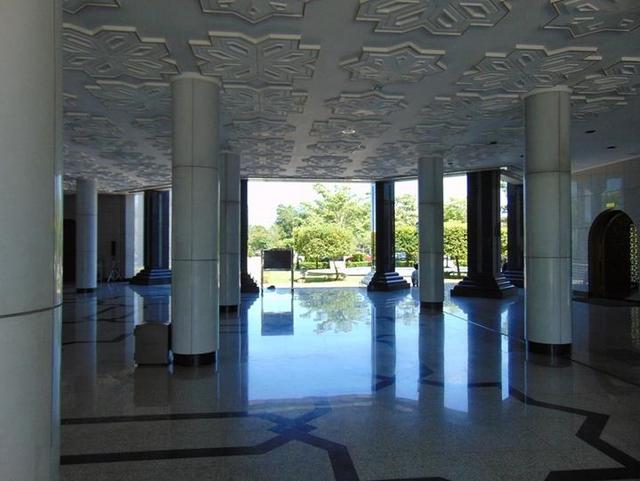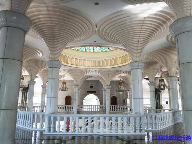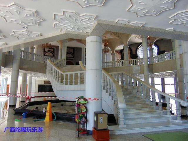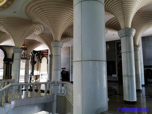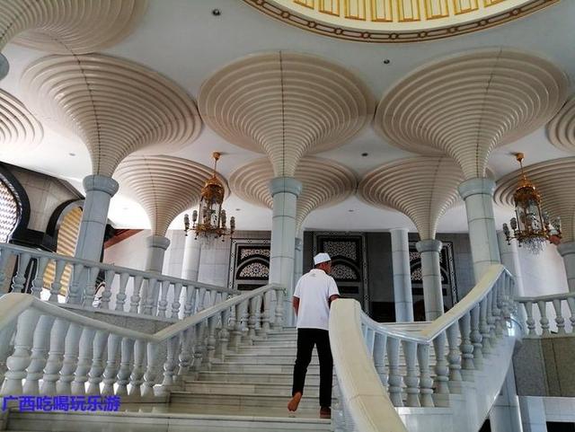 这个清真寺看外观已经很了不起了,继续参观,本来我想围着主建筑走一圈了,但是这里太大了,感觉时间不够,只走了一半,看到一层里面都是柱子为主,我就被吸引上二层了。