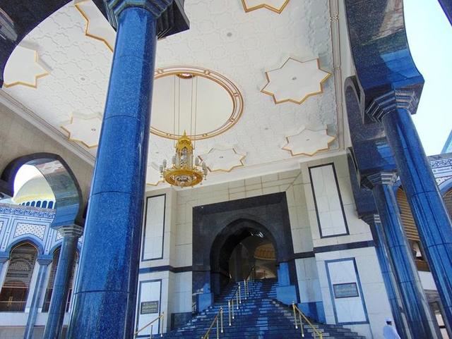 圆柱和主建筑都是蓝色系,所以这个清真寺也叫“蓝色清真寺”