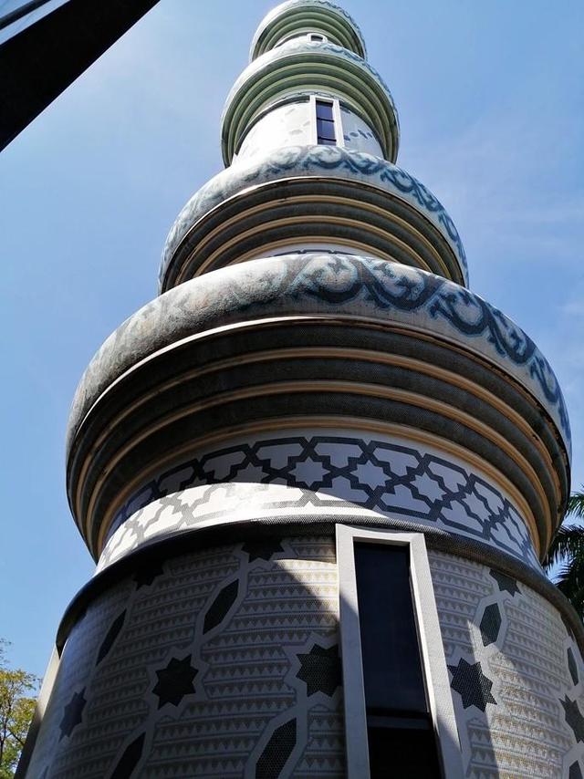 圆柱上贴了瓷砖,花纹、造型很漂亮