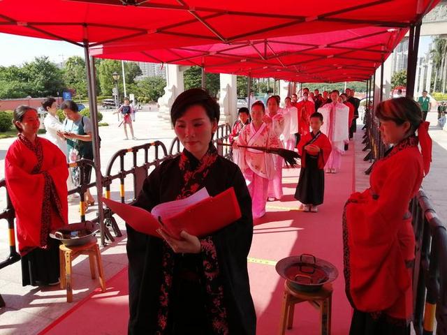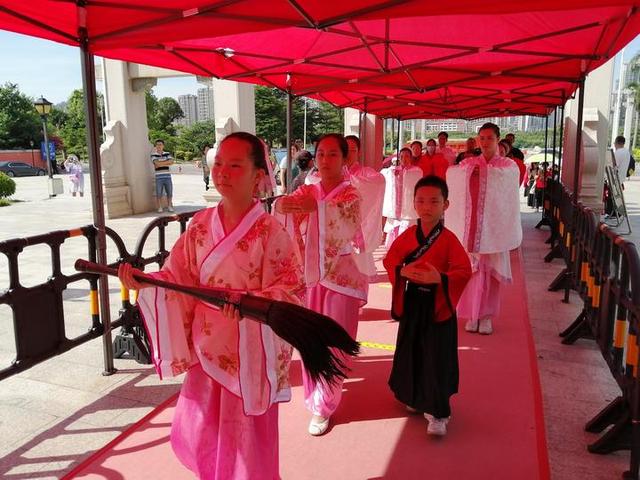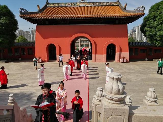7月25日上午吉时,由弘礼学院发起的启智开笔礼在南宁孔庙隆重举行,南宁市的100多名学童和家长以饱满的热情和浓厚的兴趣,身着汉服盛装参加了仪式。