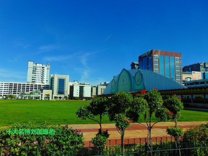 在奥玛阿里清真寺门口停车,我首先被吸引的是这个绿油油的大草坪,还有周围的建筑。