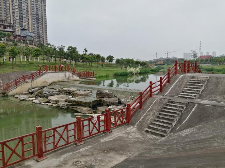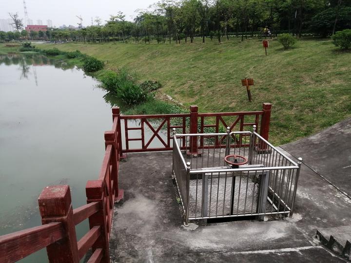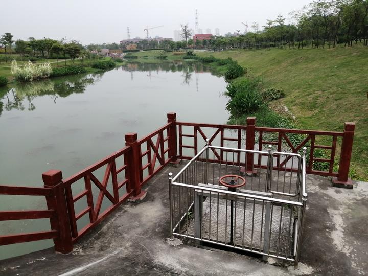 其实我在的这个位置不是那考河湿地公园的主要区域,但是也能看到这条河治理的特点,那考河是南宁其中一条内河——竹排江的左支流,河水会流到琅东,以前是臭水沟,必须治理。后来南宁市获批国家海绵城市试点建设城市,那考河开始治理,这里这个水坝就是海绵城市治理的一个位置吧,看起来是有设施可以控制水坝的开合的。