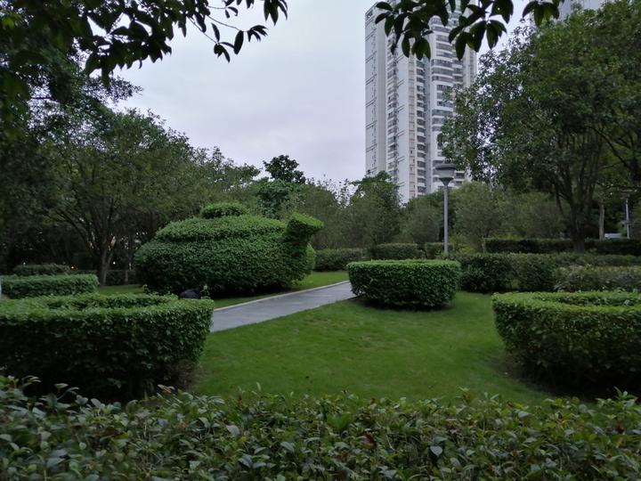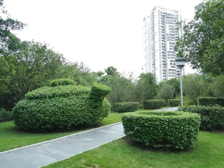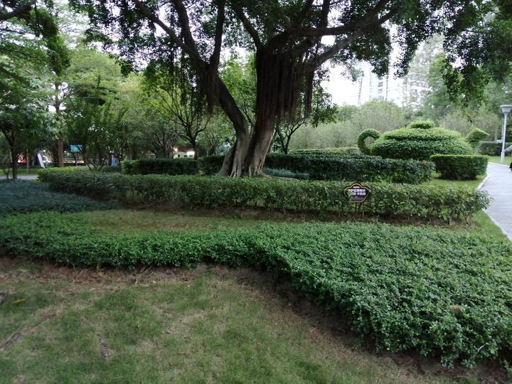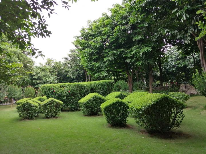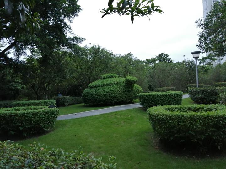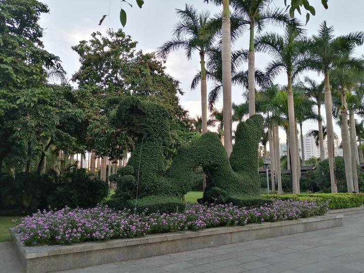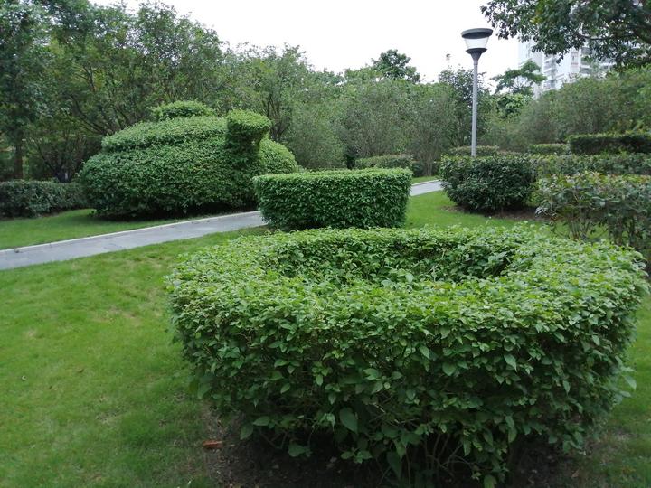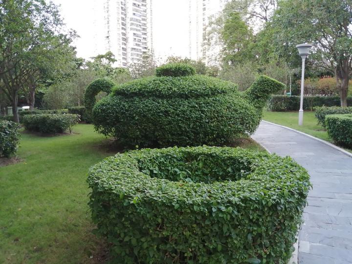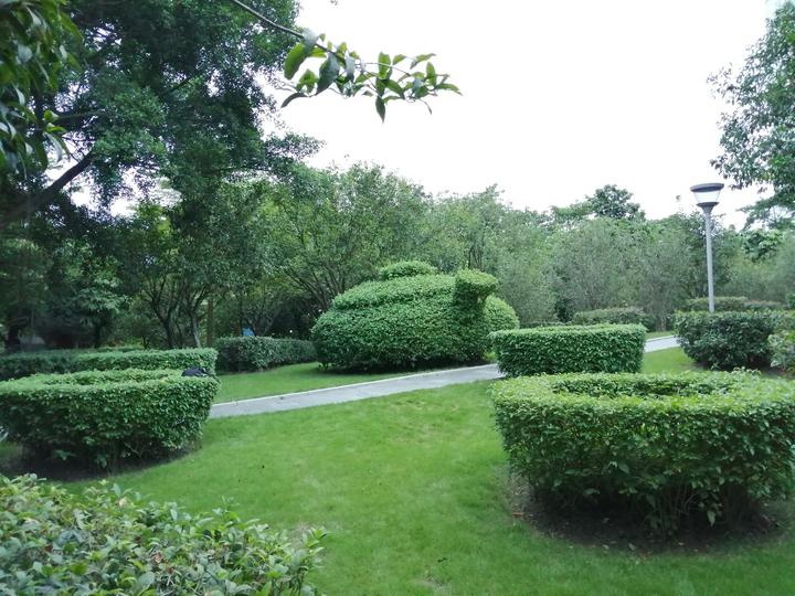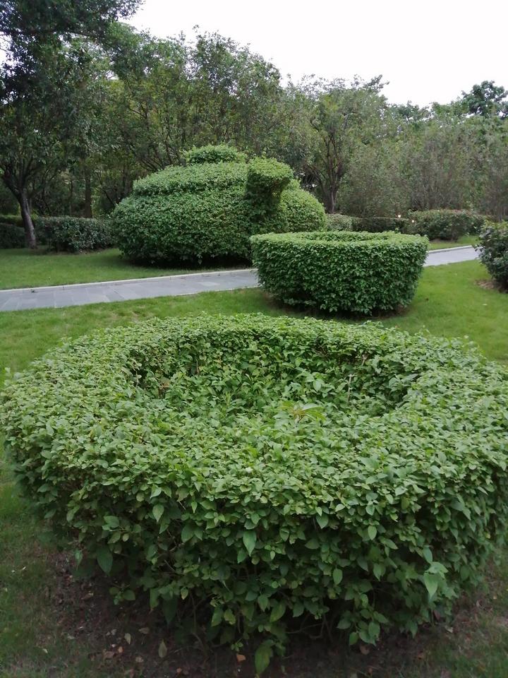 比如在金花茶公园深处的这个绿色的大“茶壶”,还有壶前边的几个茶杯,都是“引导”植物长成这样的,然后定期修剪,做得真的很逼真哦。