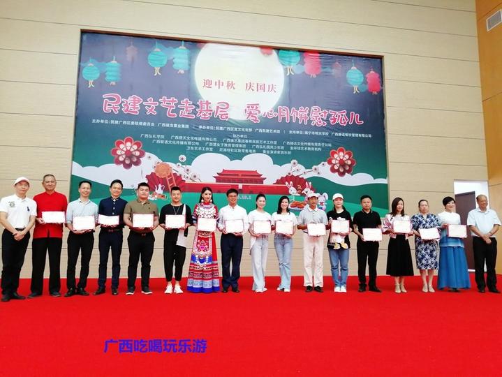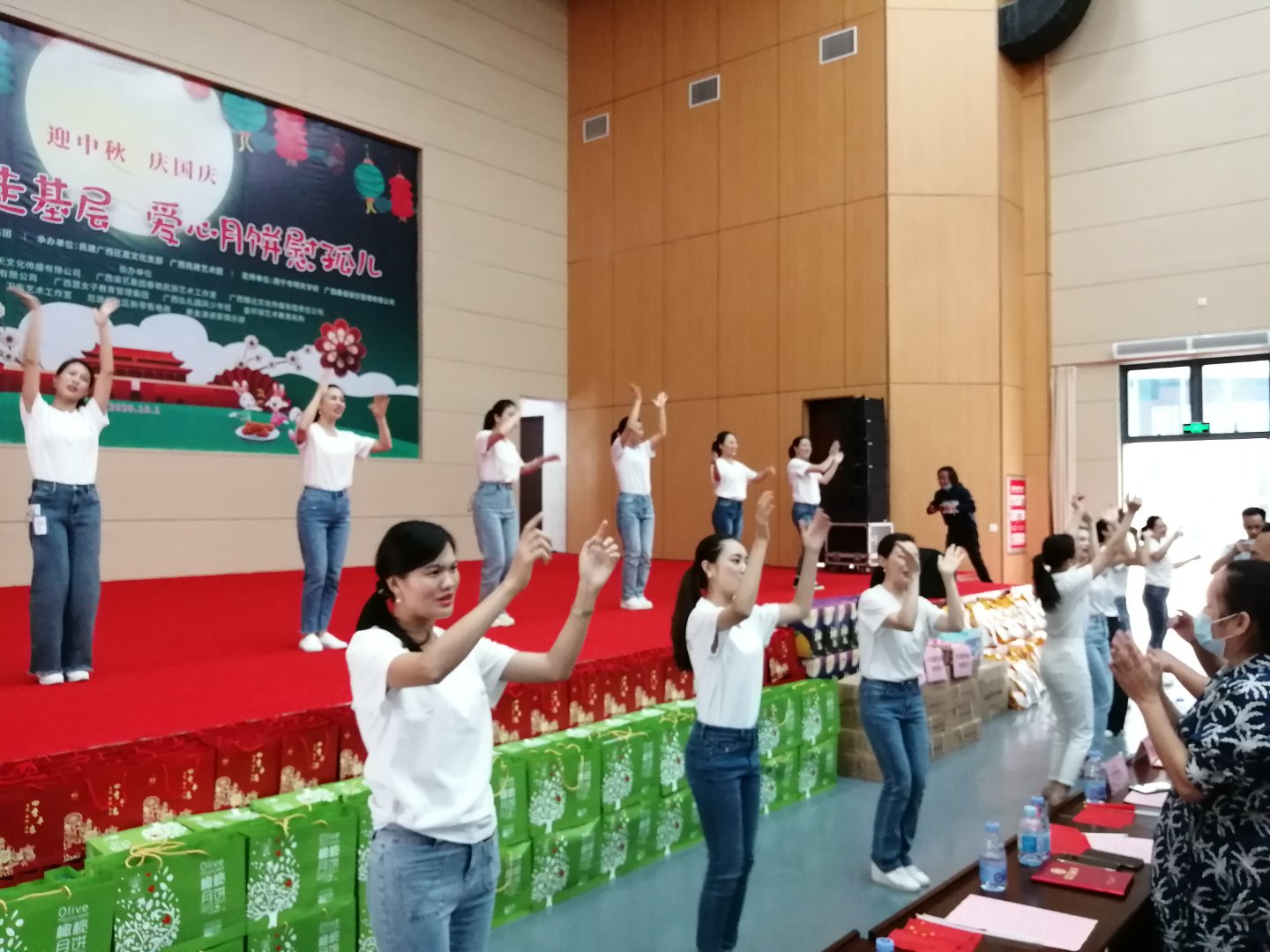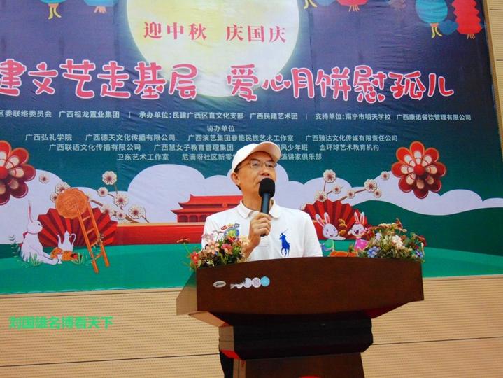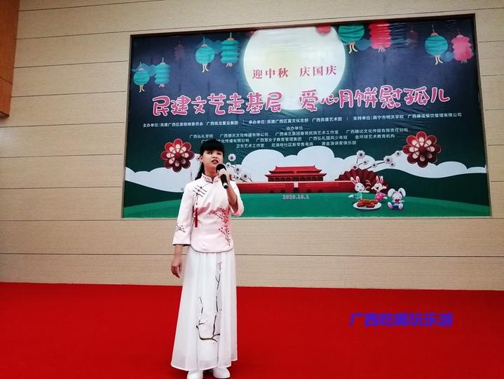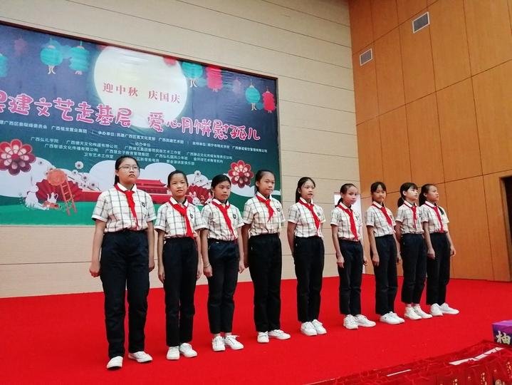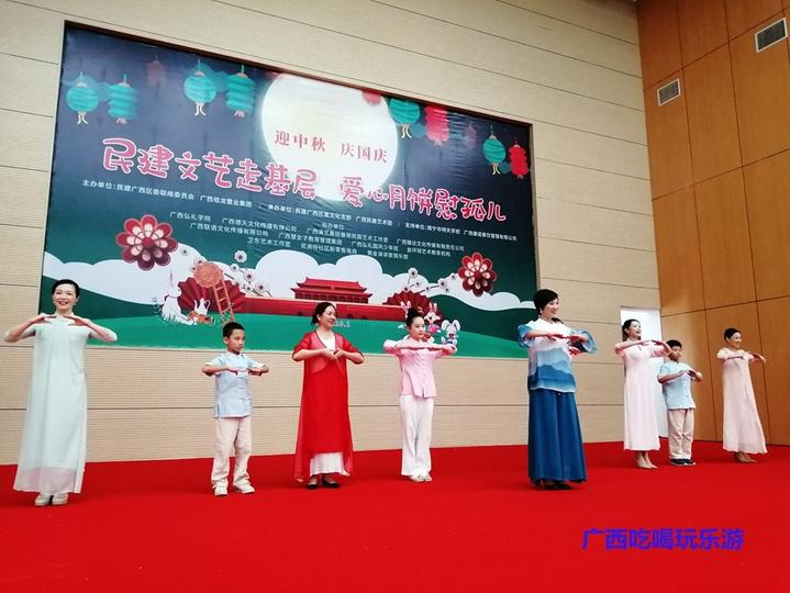 10月1日上午,民建广西区委对外联络委员会联合广西祖龙置业集团、民建广西区直文化支部、广西民建艺术团、广西弘礼学院、广西臻达文化传媒、 广西慧女子教育管理集团等一批社会爱心团体和爱心人士齐聚南宁市明天学校,开展庆祝“迎中秋•庆国庆——民建文艺走基层公益慰问演出活动”。