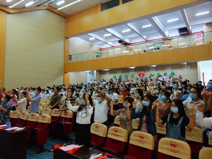 广西慧女子教育管理集团的员工带领全场跳手语舞