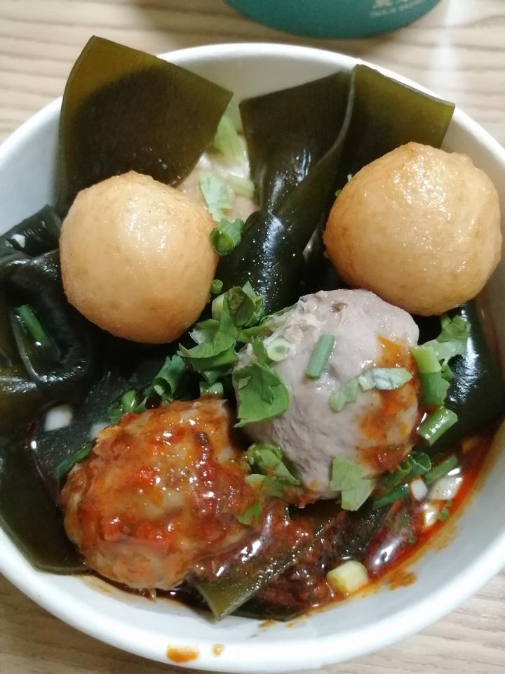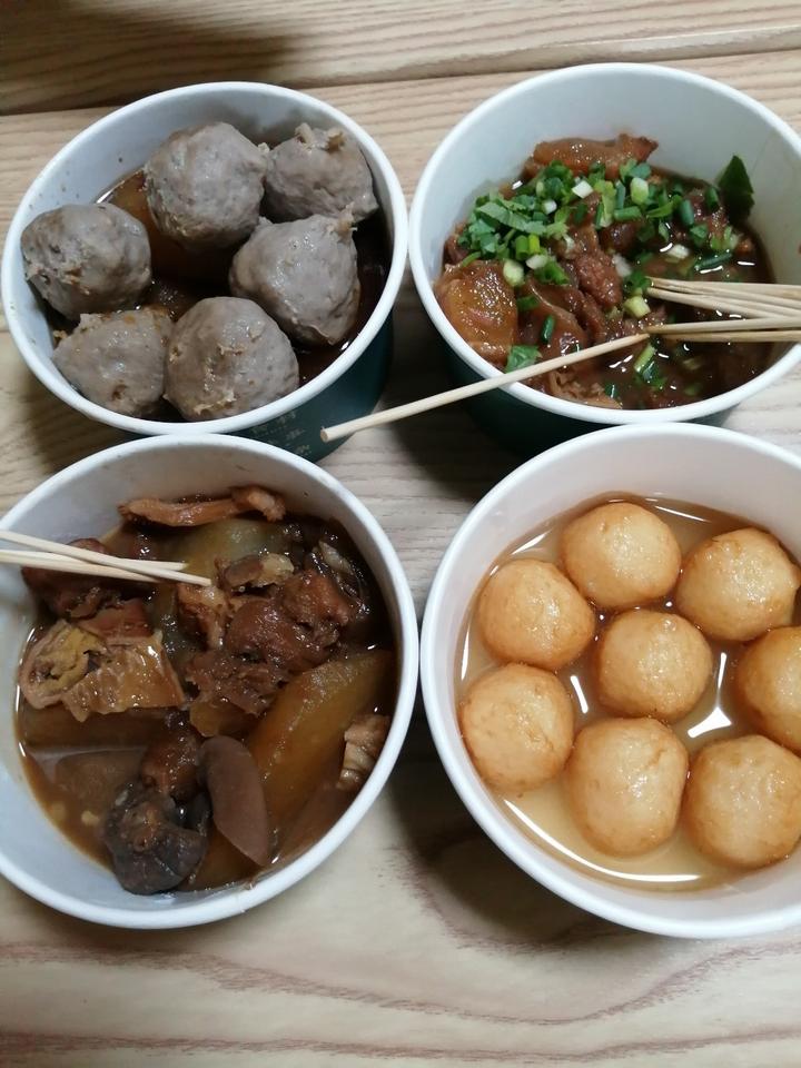 这里的品种还蛮多的,我们要了牛肠、牛筋、牛肺等牛杂,萝卜,都炖得很软,鲜香浓郁,好吃正宗,特别推荐咖喱鱼丸、牛肉丸和面筋,非常Q弹,味道好极了。配上面条或者粉就也不错,配上一碗桃淘的芋头西米糖水就更舒爽了。