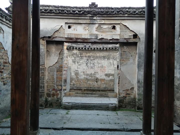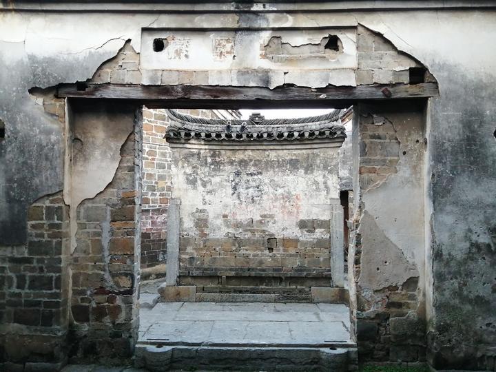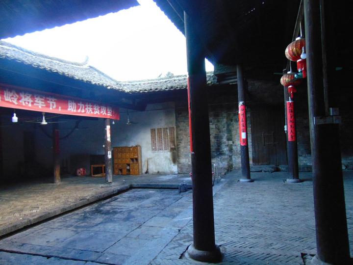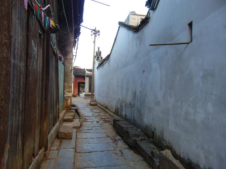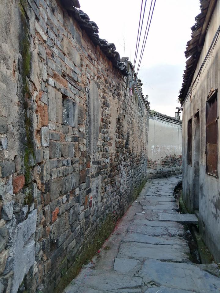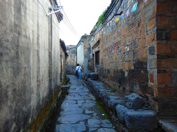 从桂剧院旁边出去,都是老的砖瓦房了。月岭古民居属典型的湘南式民居,始建于明末清初。这里有很多巷道,巷道铺满了条形青石板或青砖,巷道比较窄,多数巷道处于建筑阴影之中,很多巷道中,是有排水明沟沿巷布置的,体现出村子的布局很正规、完善。