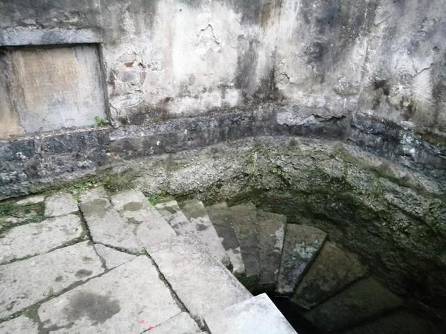 除了有古老的民居,还有好几个老井。比如比较有名的叫太极井。我们继续往前走,就看到了这口井,村里的一位70多岁的老人告诉我,因为这里有十二级阶梯螺旋而下,看起来很像螺蛳,这个井又叫螺蛳井。这口井始建于清乾隆十二年(1747年),清嘉庆十一年(1806年)重建。清嘉庆二十一年(1816年)在此井内竖立了一块《修太极井碑记》,现在看,字迹还清晰可认。老人说,这口井的水现在是用来洗衣服了。
