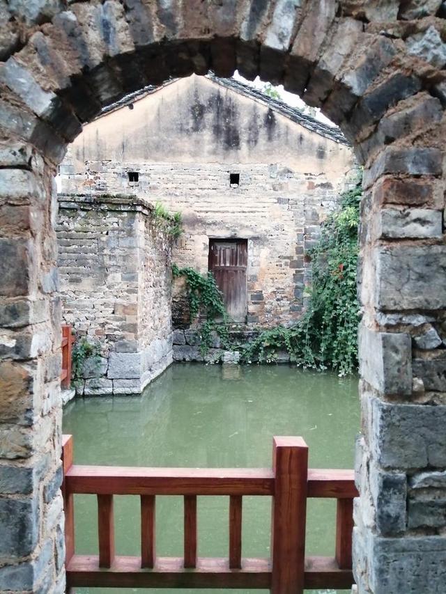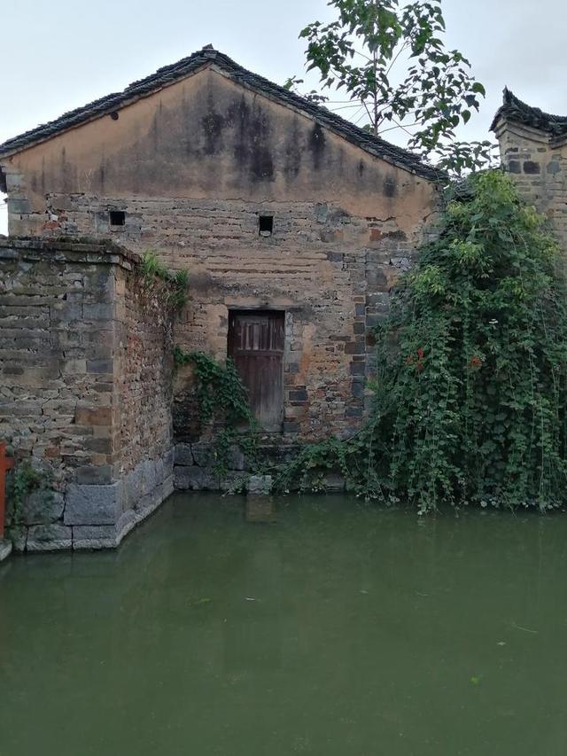 10月3日傍晚,我在月岭古民居里游走,长长的青石板巷子,迂回曲折。突然发现有一处青砖屋门里面是一个水塘,水塘有木栏杆围住,并不通向那个人家,周围都是房子的墙面,直观上给人的感觉就是周围的房子是建在水中的。周围的湘南式民居倒影在水中,此时刚好是落日时分,整个感觉真不错,岁月静美啊。那么问题来了,这水塘到底是干嘛用的呢?是辟邪的,还是防火的呢?是养鱼的,还是村里水系的一部分?