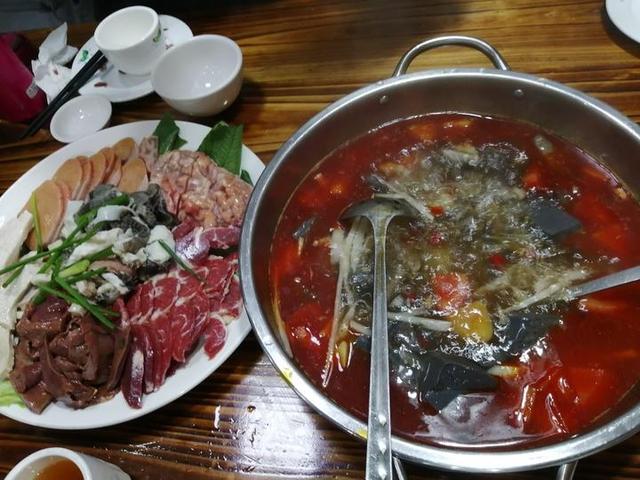 在灌阳文市镇吃的酸汤牛八宝火锅,吃到最后还是保持原味,真爽 图文:刘国雄