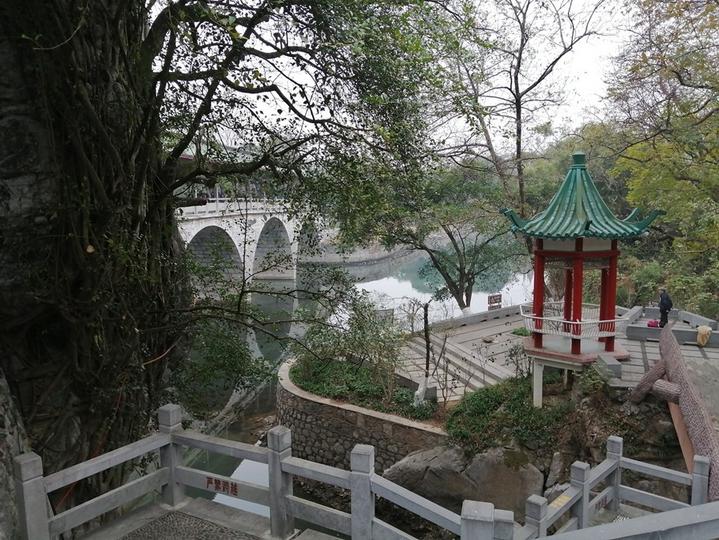 这次进七星景区游玩,这是我很多年后再次进这里。七星景区位于桂林市区的漓江东岸,是桂林的老牌公园,进去就看到漓江的支流小东江,水很清,很平缓,往前就是花桥。花桥是桂林最古老的桥,始建于宋代嘉熙年间,原名嘉熙桥,是只有四个孔的桥,后来被洪水冲毁、重建,现在的花桥是1965年依原式重修的,并加筑旱桥以泄洪,就是在岸上的旱桥建了7个孔,可以排洪。