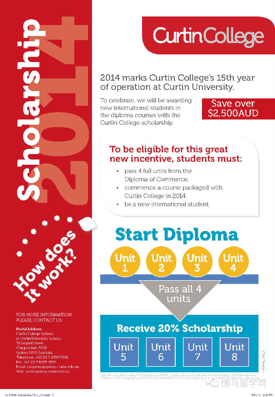 通过【懒马留学网】免费申请2014年Curtin大学悉尼校区Diploma