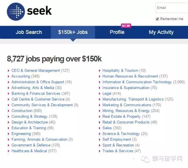 大家看看澳洲目前年薪15万澳元的招聘广告吧。目前全澳洲有8727个工作是年薪15万以上的,我们发现计算机有3909个工作,需求巨大,遥遥领先其他行业!其次是建筑工程680个,医学健康